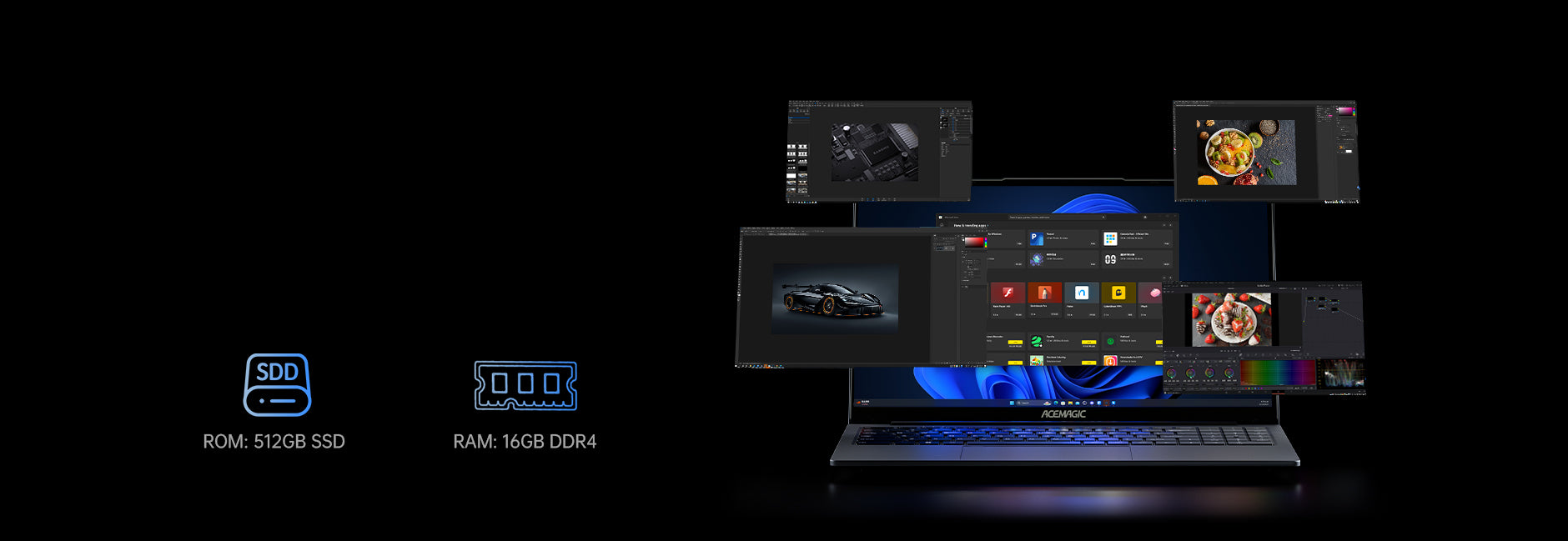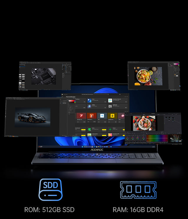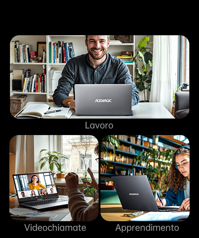 Questo ACEMAGIC laptop LX15 è stato progettato appositamente per professionisti e studenti molto impegnati. È dotato di 16 GB di RAM DDR4 e un SSD da 512 GB, offrendo così spazio di archiviazione sufficiente e un accesso rapido ai dati. In combinazione con il potente processore Intel N97, garantisce un multitasking fluido e un funzionamento veloce, consentendo di passare senza interruzioni da un'applicazione all'altra, dalle videoconferenze all'elaborazione di documenti.