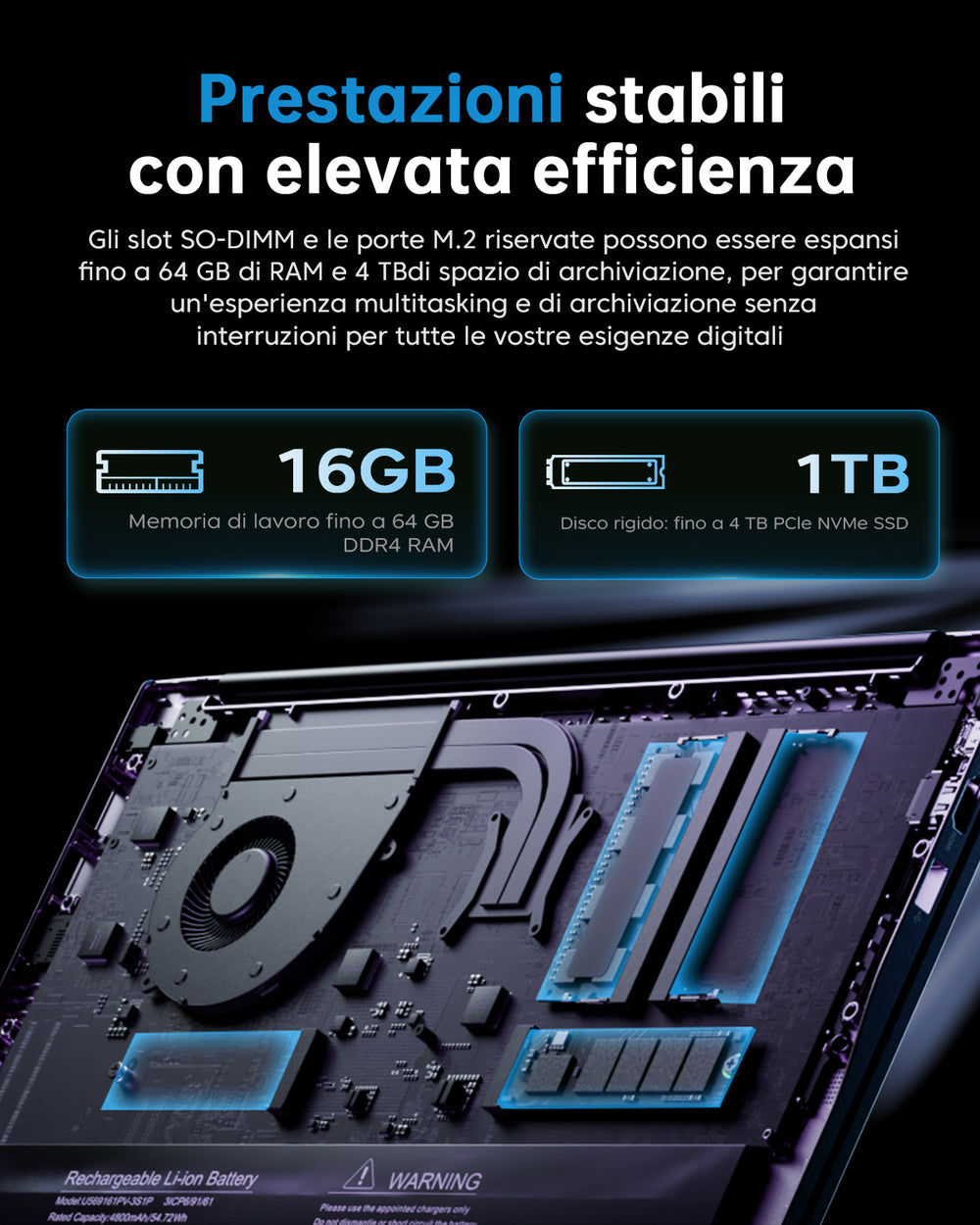 | RAM | 16GB DDR4 2666MHz Dual Channel, Slot DDR4 SO-DIMM*2, Fino a 64 GB |