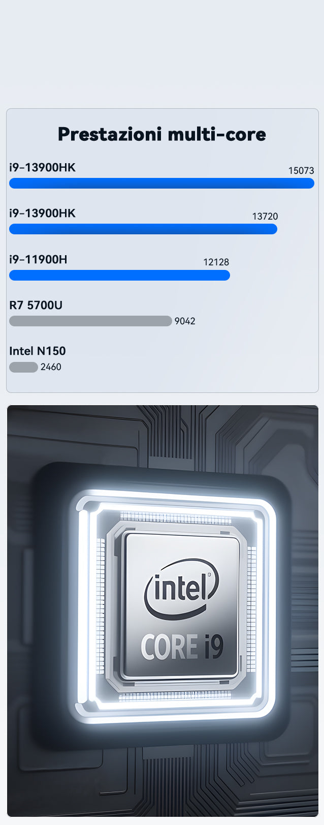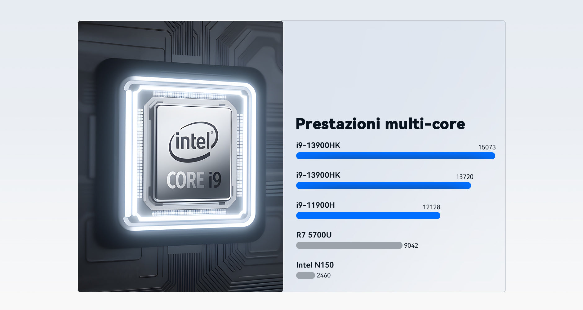 | Processore | Processore Intel® Core™ i9-13900HK, 14 Core/20 Thread (Intel 7, 24 MB di Cache L3, Frequenza di Base: Core P 2,6 GHz / Core E 1,9 GHz, Frequenza Turbo Fino a 5,4 GHz) |