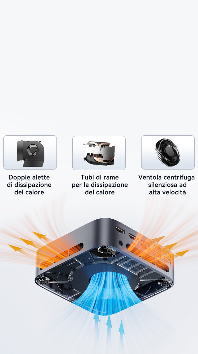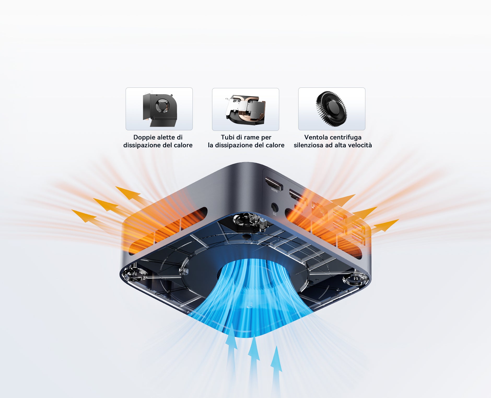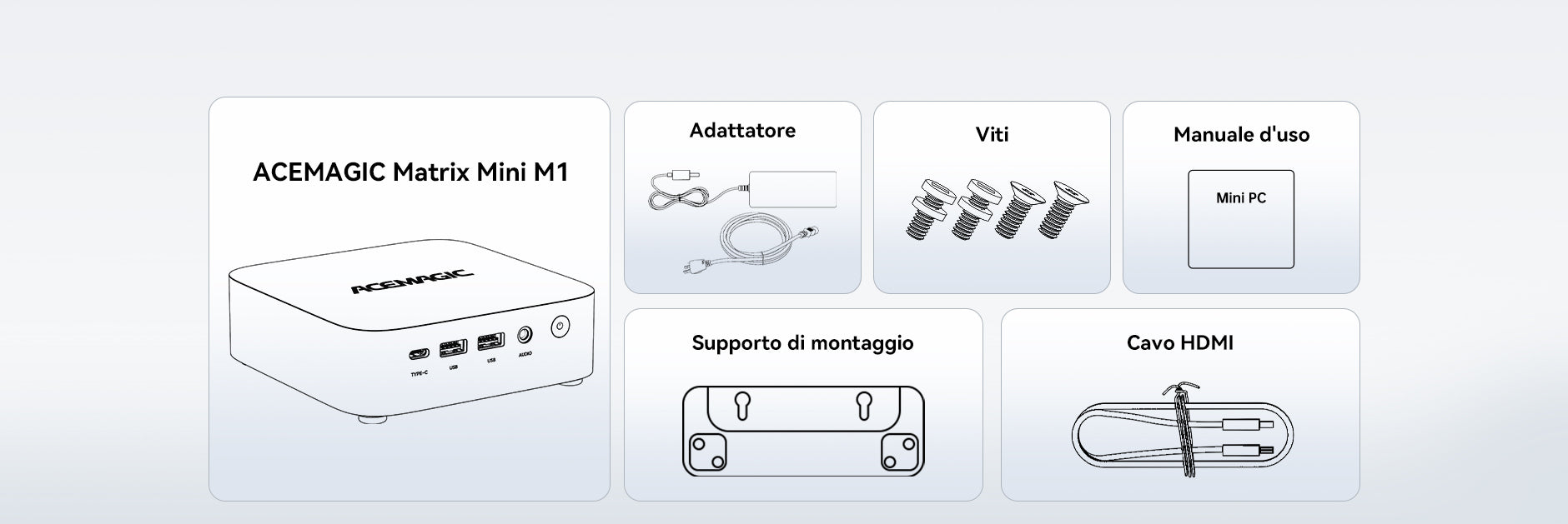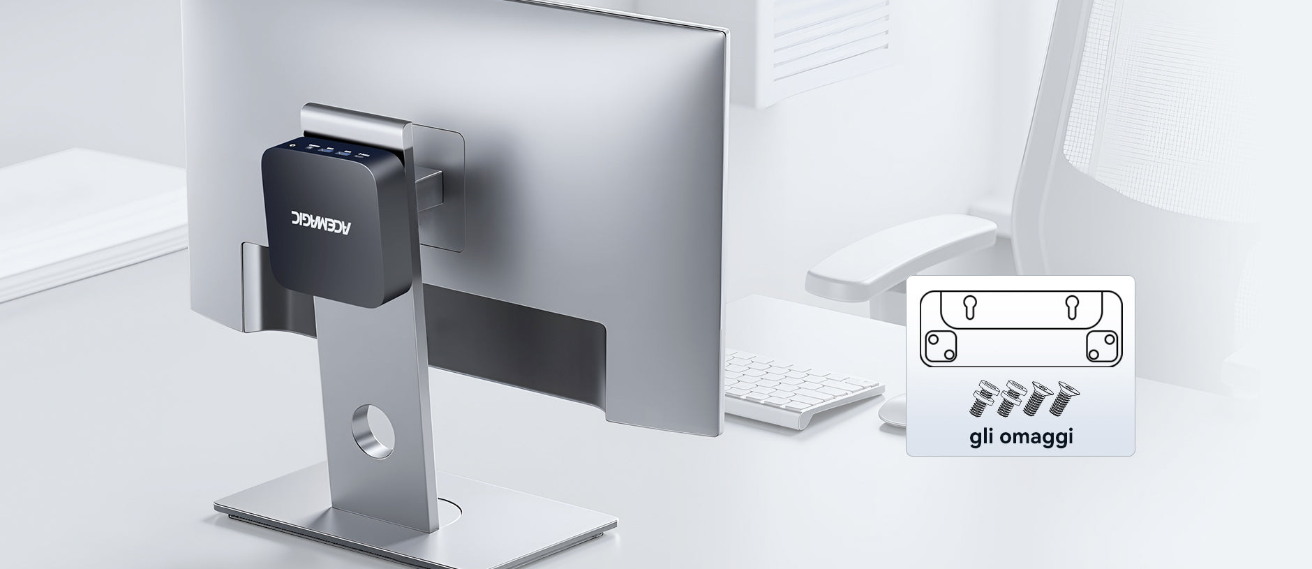 Il barebone non include un disco rigido (SSD), memoria RAM o licenza del sistema operativo. (I dati per scaricare il sistema operativo sono disponibili sulla nostra pagina di supporto).