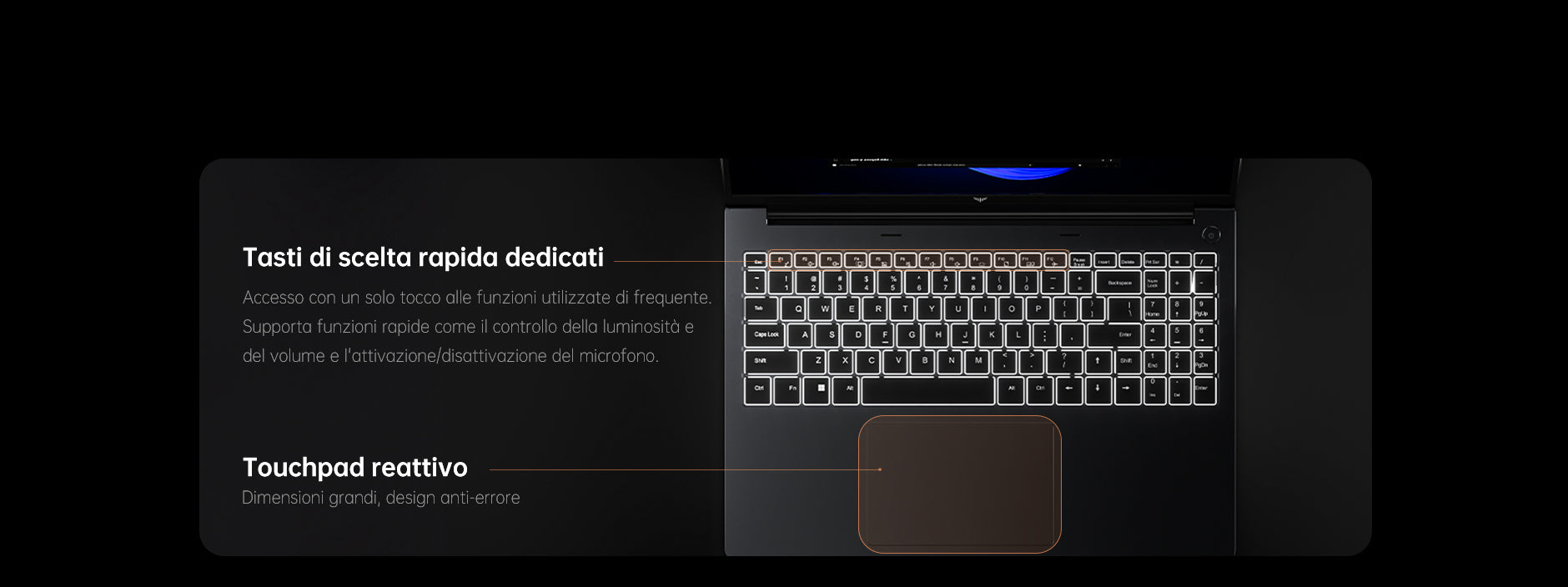 Tutti i laptop hanno una tastiera con disposizione QWERTY e sono dotati di una membrana multilingue (tedesco, francese, italiano e spagnolo).