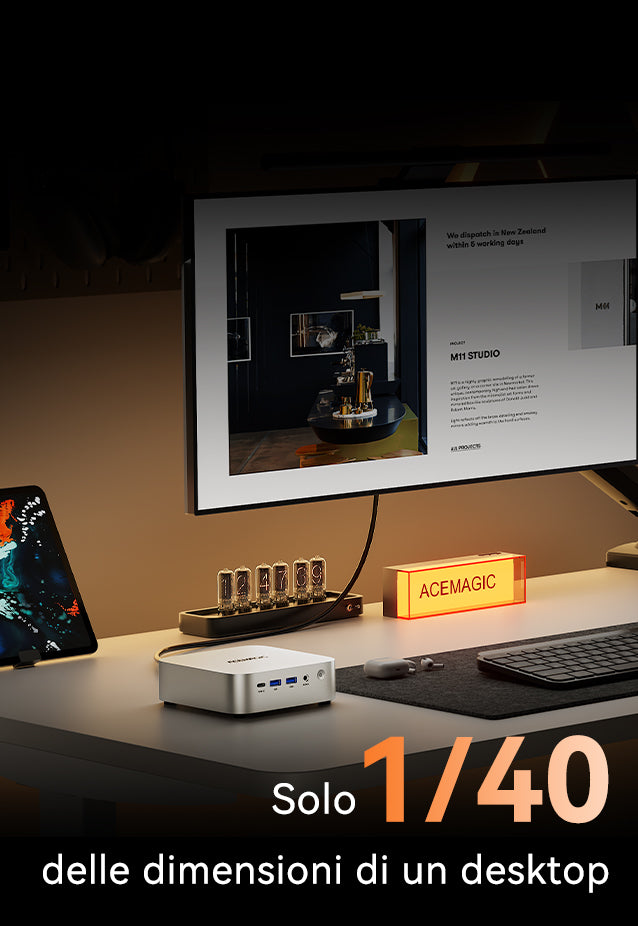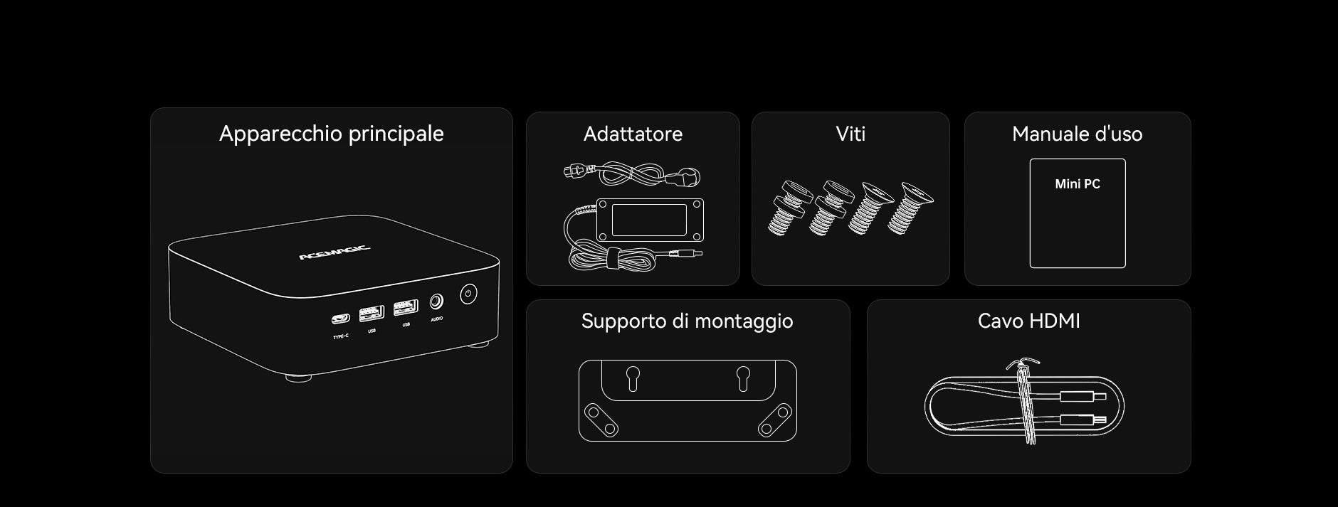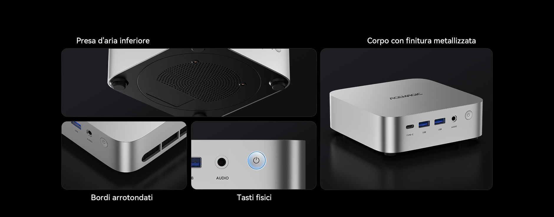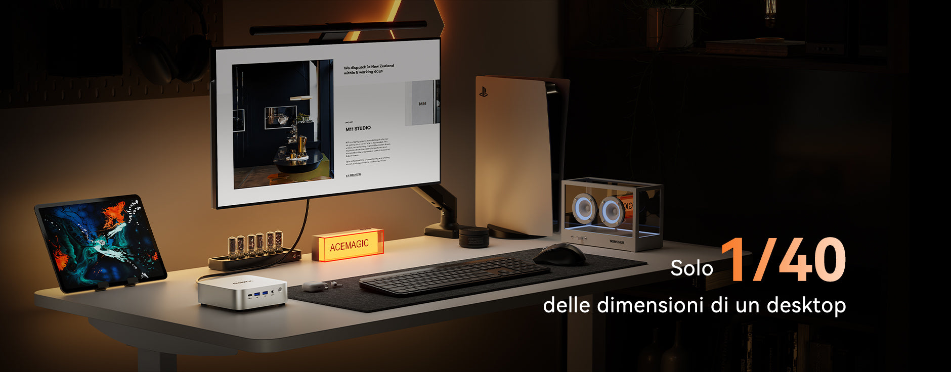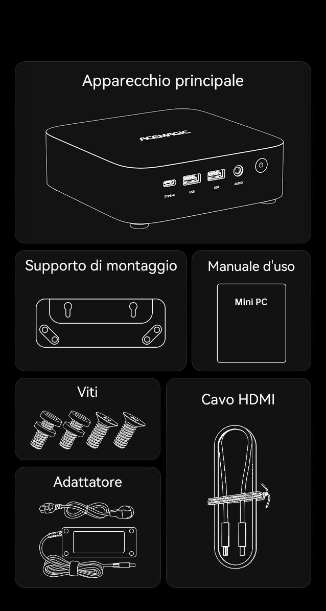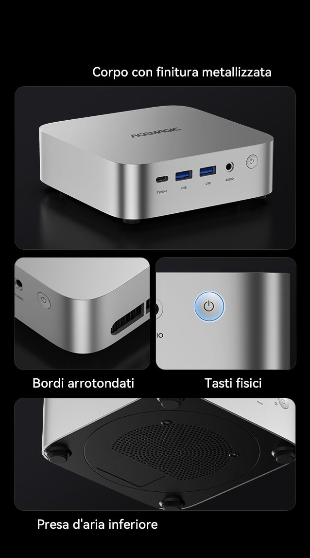 ho acquistato questo mini PC e sono rimasto piacevolmente sorpreso! Il design è semplice e compatto, e le dimensioni sono perfette per la mia scrivania, occupando pochissimo spazio.