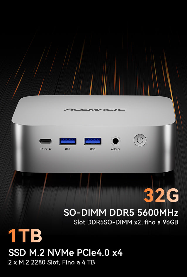 | RAM | DDR5 5600 MHz Doppio Canale, Slot DDR5 SO-DIMM*2, Fino a 128 GB, Supportano Una Frequenza Massima di DDR5 5600 MHz |