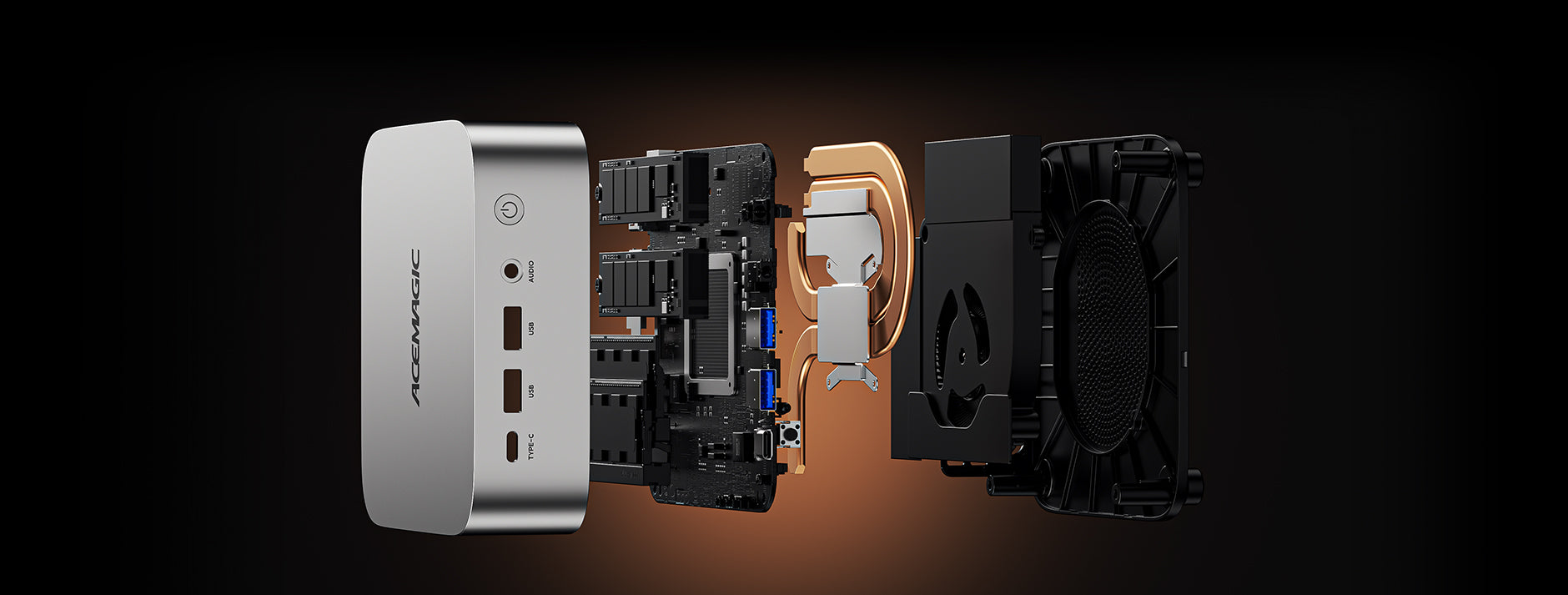 Dotato di processore Ryzen 7 8745HS/H255, 8 core e 16 thread, DDR5 5600 MHz dual channel per garantire un multitasking ad alta velocità e supportare attività creative e giochi. Supporta la visualizzazione su 3 schermi e video fino a 8K. La superficie metallica del corpo conferisce un aspetto lussuoso.