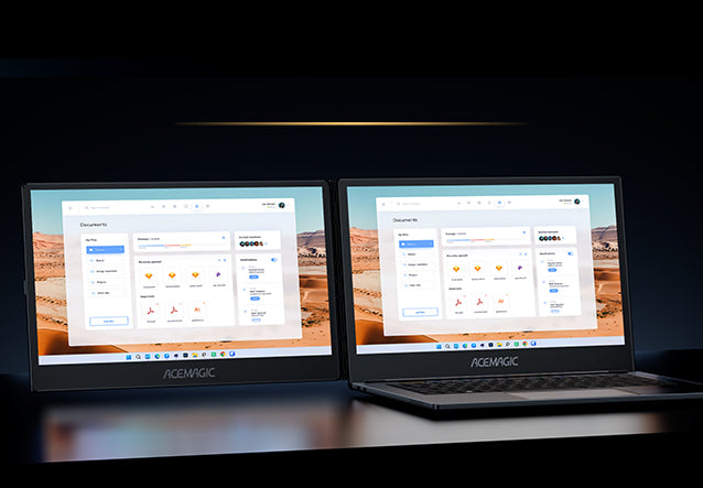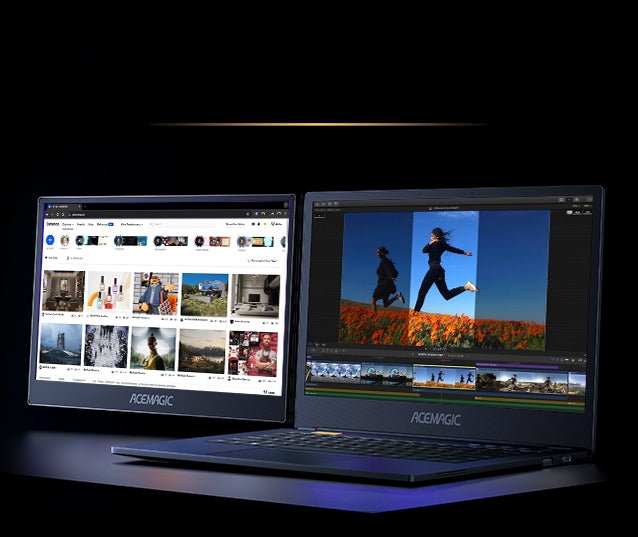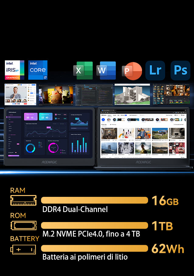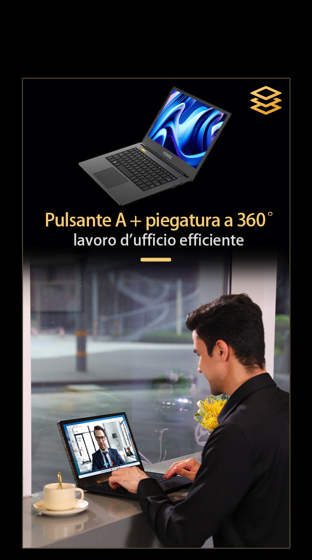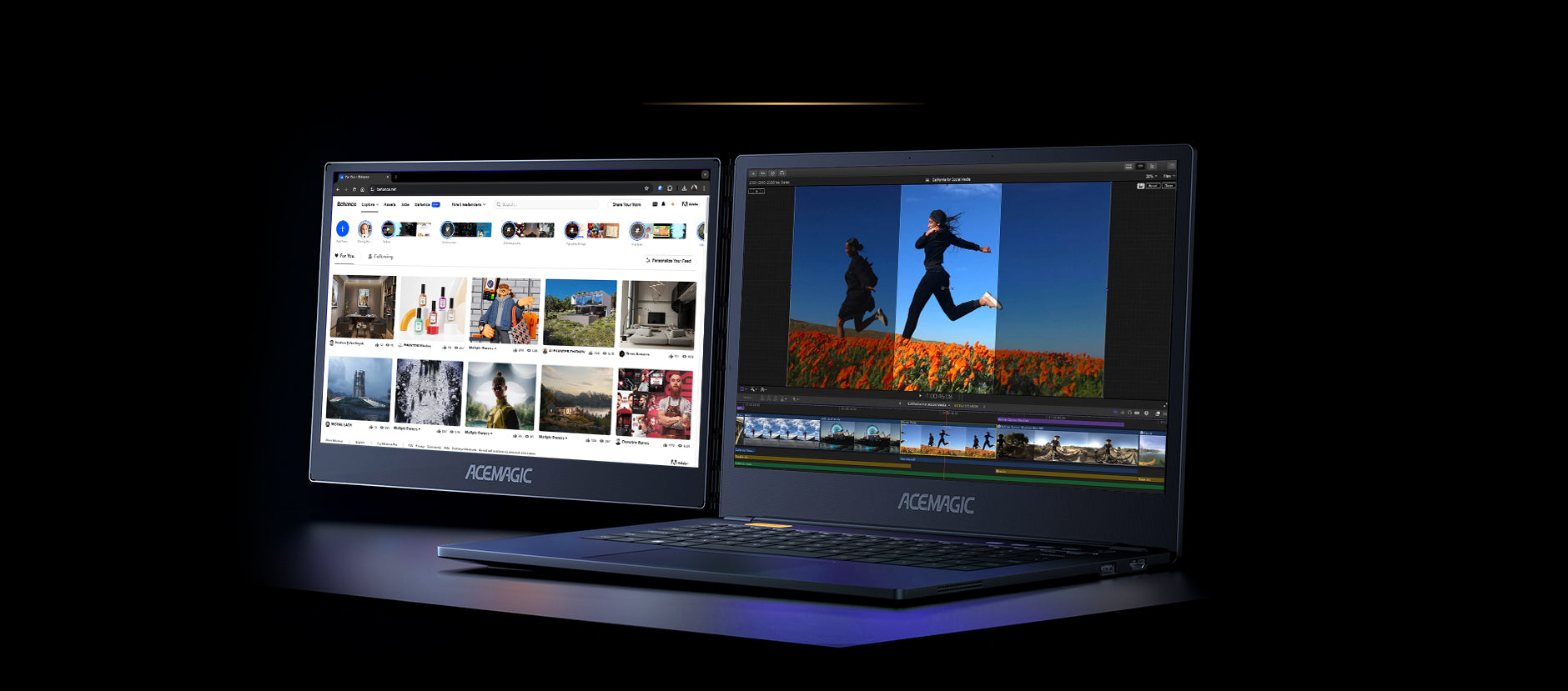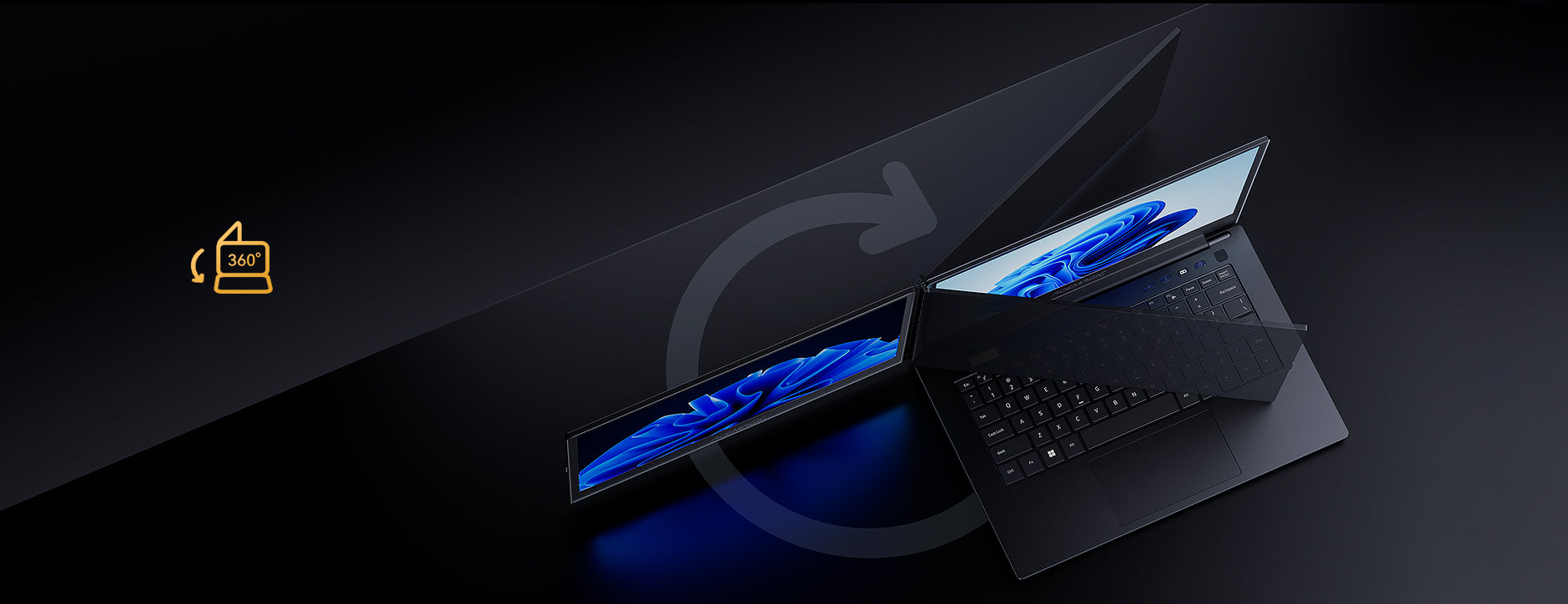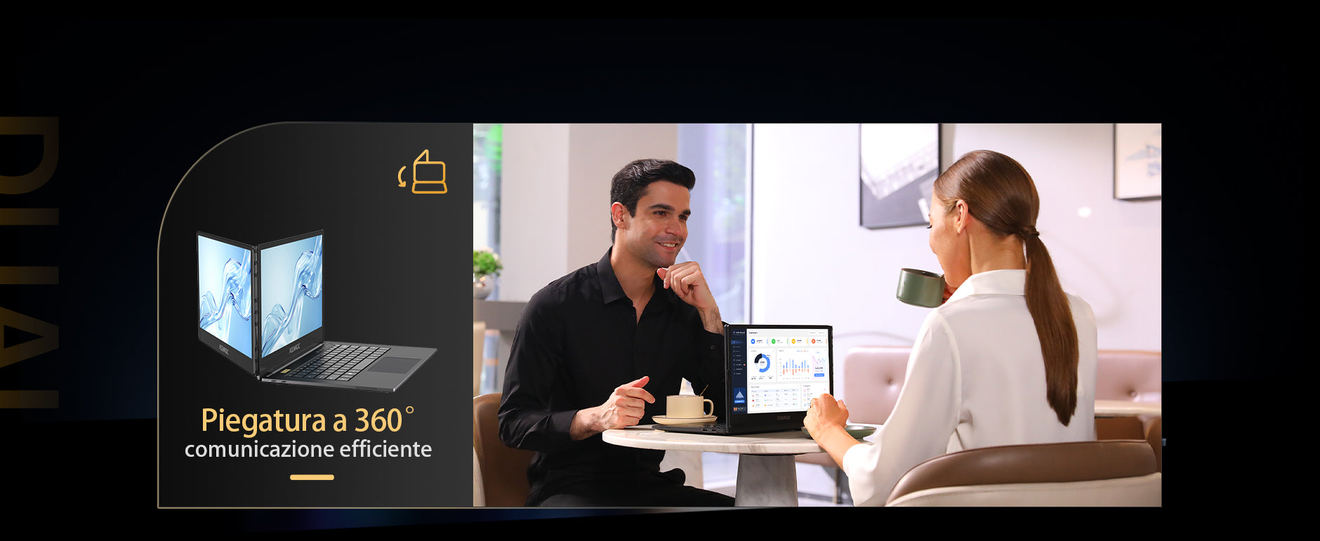 L'ACEMAGIC X1 è un laptop business all'avanguardia con doppio schermo a 360°, dotato di processore Intel Core™ i7-1255U. I suoi due display Full HD da 14 pollici offrono flessibilità grazie a un esclusivo design a doppio schermo che può essere ruotato orizzontalmente di 360°. Ciò aumenta la produttività e consente una comunicazione aziendale personale efficiente, mantenendo la privacy sul desktop e trasmettendo un'immagine professionale.